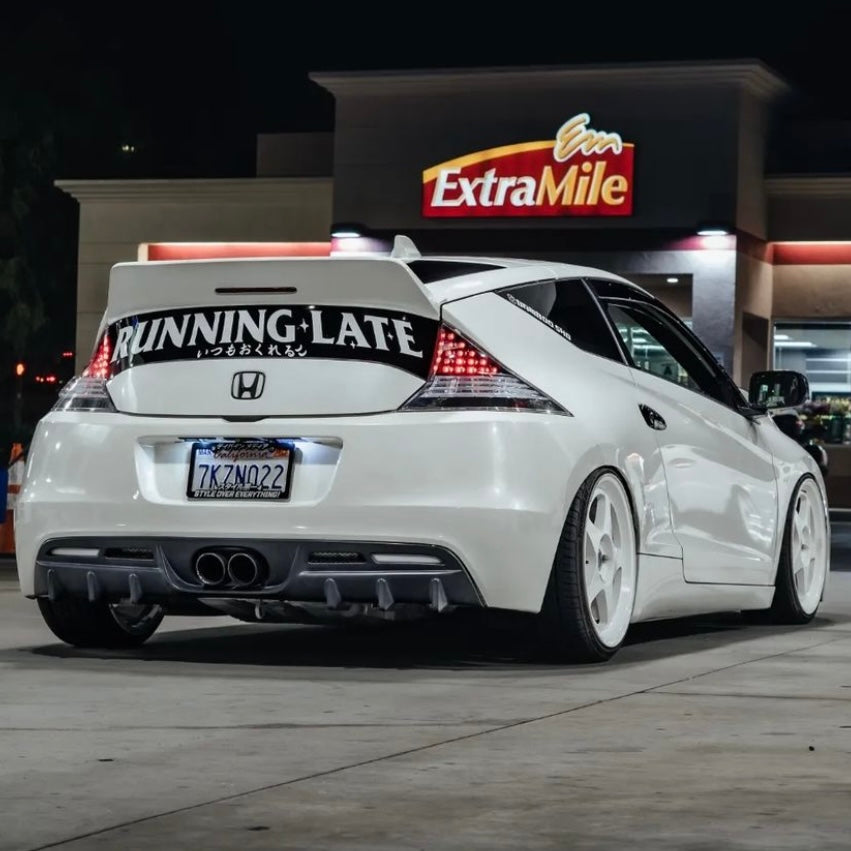 Under "Running Late" the banner says, "いつもおくれるです" - Itsumo okureru desu (pronounced EET - SUMO - OH - KOOH - RAY - ROOH - DESS) - Itsumo meaning always, okureru meaning overdue, and desu meaning it is. Put it all together and it reads いつもおくれるです "It is always late!